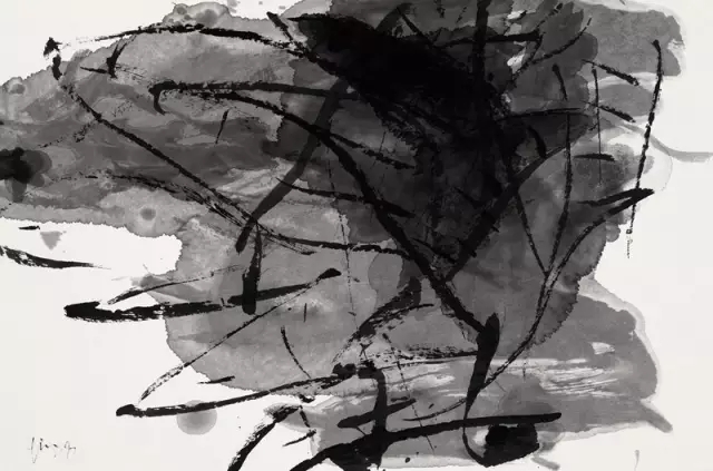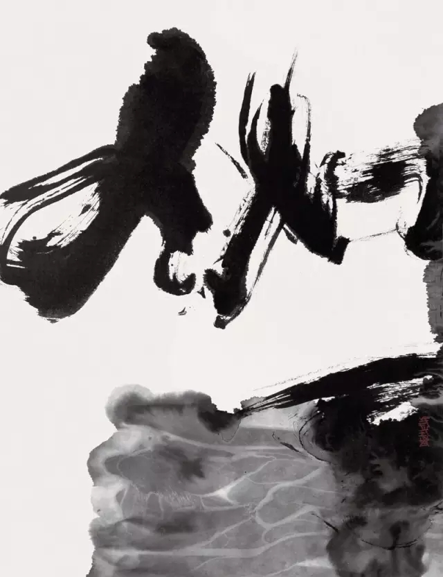 这种无待指涉而意义充盈完满的情形,在他的一系列《无题》和仅标示序号的作品中表现得尤为明显。题为“无题”,这些作品的所指其实变成真正的“无所指”,而“画面”也就成为真正意义上的“漂浮的能指”。它们是单纯的水墨嬉戏,彰显着艺术家的性情和修养,喜悦或忧伤,却无关于物象。部分作品标题如《渡》《青鸟》《十翼》的存在,仿佛只是为了将观众的想象力限于一定范围,免得他们因想象的无边无际而无从着落罢了。