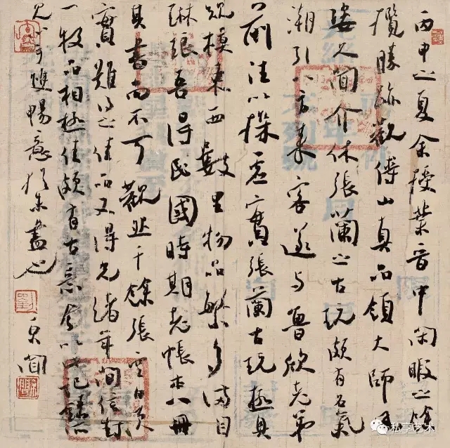 年轻的时候最瞧不上清人甚至民国时期的书法,一个个看起来呆头呆脑,傻大黑粗,认为那不过是在写字,根本谈不上书法艺术;也曾羡慕过今人书法中的那种潇洒、风流,那种浓淡枯湿、疏密对比的视觉冲击。随着时间的推移,眼界的开阔,技法的深入以及对历代书法经典的思考和探究,渐渐地发生了一些思想变化,原来眼中那些呆头呆脑、傻大黑粗的东西似乎变成的厚重和古朴,原来眼中那些潇洒和有视觉冲击的东西似乎还缺少了什么!这个念头开始在我的头脑中若隐若现。