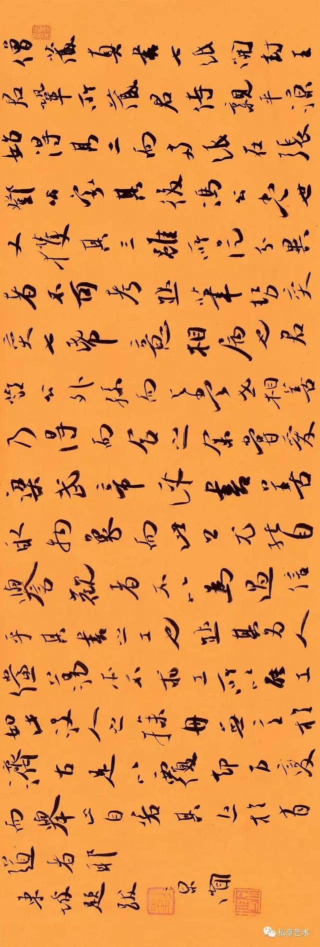 基本点划的缺失和弱化已经渗透到了当代书法的各种书体,因为基本点划形态的缺失和弱化,缺乏了规矩的制约,于是便产生“草篆”、“草隶”、“草楷”、“草行”、“草草”,所有书体都有了“草意”,大都是当代书法人的创造!当代的篆书跟古人比潇洒了许多,但典雅和凝练少了;隶书中的最基本的蚕头燕尾以及厚重、古朴的意境见得少了,取而代之的是带有草意、简单而不是简约的线条和极其夸张变形的结字;富有中和之美、点划精到、笔法流畅而又规规矩矩的楷书不见了,要么是恣肆、乖张,刻意追求刀砍斧凿的魏碑,要么是追求碑版效果,毫无生机、写得要死的所谓“唐楷”;温文尔雅、小桥流水、自然流畅的行书见得少了,到处是连带的草意十足的行书,粗细对比、大小对比、疏密对比强烈,但是浮躁油滑之气却陡然而升!