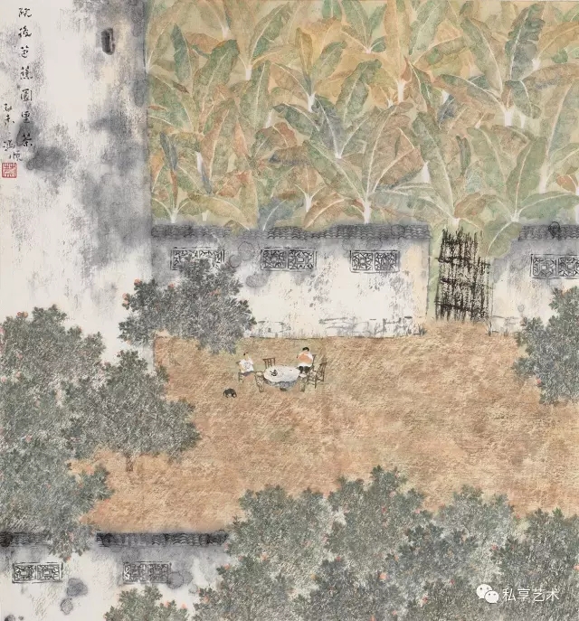 郭熙有“乐、适、亲”和“可行、可望、可游、可居”之说,可行、可望是乐,人在山水之外,作为山水的旁观者而存在,自然山水给人的一般美感和感官愉快;可游是适,是人与自然的相互走近,它带来心灵层面的愉悦感,而可居是亲,是人与自然合二为一、不分彼此,是一气流荡中的整体,是天人合一的审美境界。“可居可游”是中国山水画的审美理想,涵悦的画让人有“可居可游”的想往,似乎提供了一个心灵的栖息之地,一个可遇而不可求的精神家园。