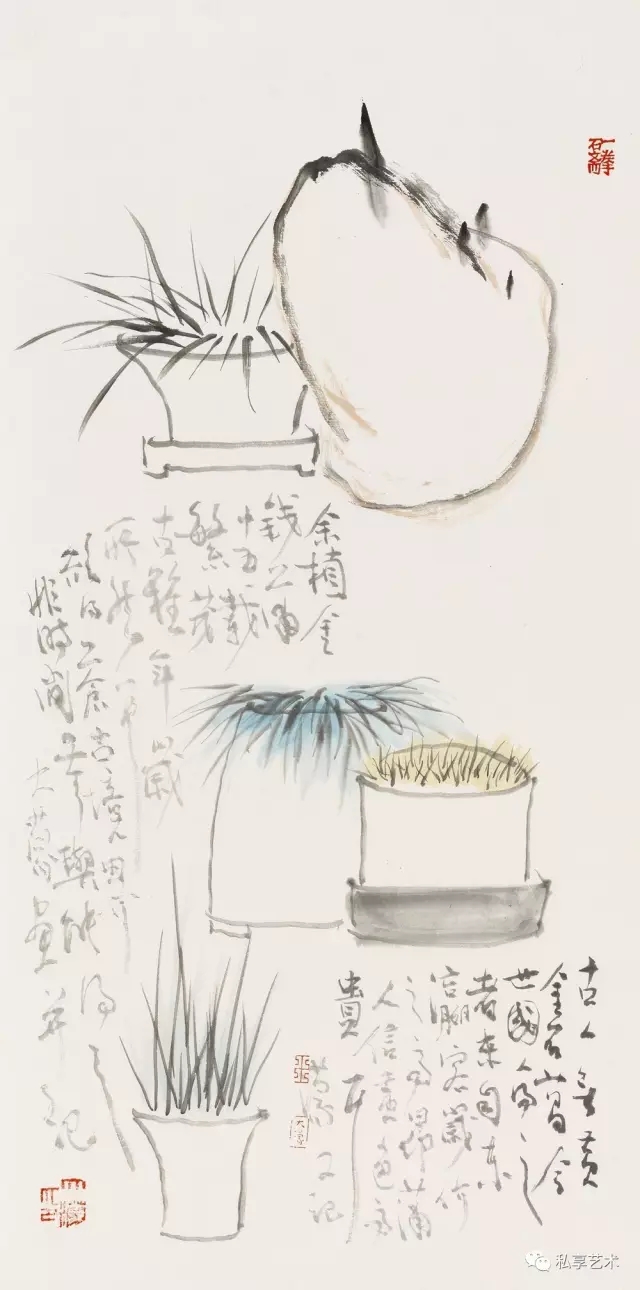 震宙的笔墨清新,这种感觉的清新,出奇,大胆,构成了一种很现代的风度,