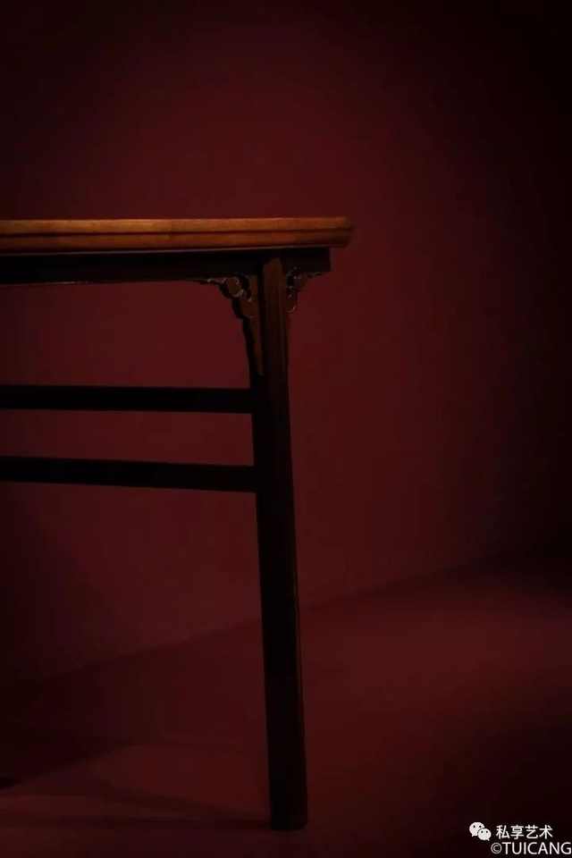 在我收藏的不同阶段出现过两件桌子,几乎一模一样尺寸、结构的桌子,唯一不同的是,其中一件面髹黑漆,在我的库里并没有这样的例子,进入嘉木堂的要求是很高的,状态要几近完美,有漆的东西就很难保存,过往30年也没有一件能符合我要求的,这件就比较完美,我很少自己去接触,因为我的网络非常广,这件东西我马上搭飞机自己去看。我知道大家对收藏的故事都感兴趣,但对于这次木趣居的这组东西,我倒希望大家能多一点关注家具的本质与精神,所以,在我编书的时候故事的比例有所减少,都只是详细记录了每一件家具的结构、尺寸、来源等。