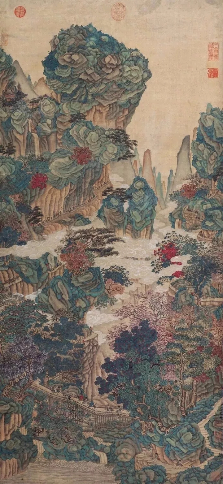 荆浩《春山行旅》立轴,计成崇拜荆浩,造园常取其画意