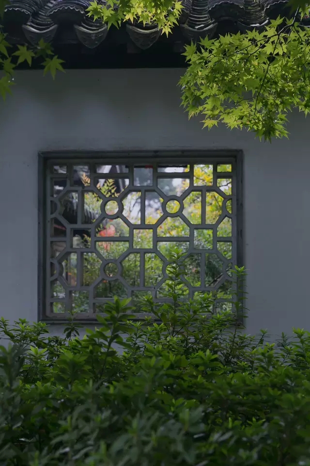 更加让我惊艳的两个构造,一个是廊,一个是漏窗。看多了古画里美人的倚廊而立,事实上,廊能将园林的房屋和山池联为一体,是景点间遮阳避雨的地方,还能分隔空间,调节园林布局的疏密,形成不同格调的景观。在弯曲深长的游廊里移步换景,墙上的漏窗式样各异,更多带着主人的审美气息。漏窗之美不仅仅在于人可以透过窗子看院外的风景,实用的一点在于,园外的人只能看到漏窗的花纹,无法窥见园中。