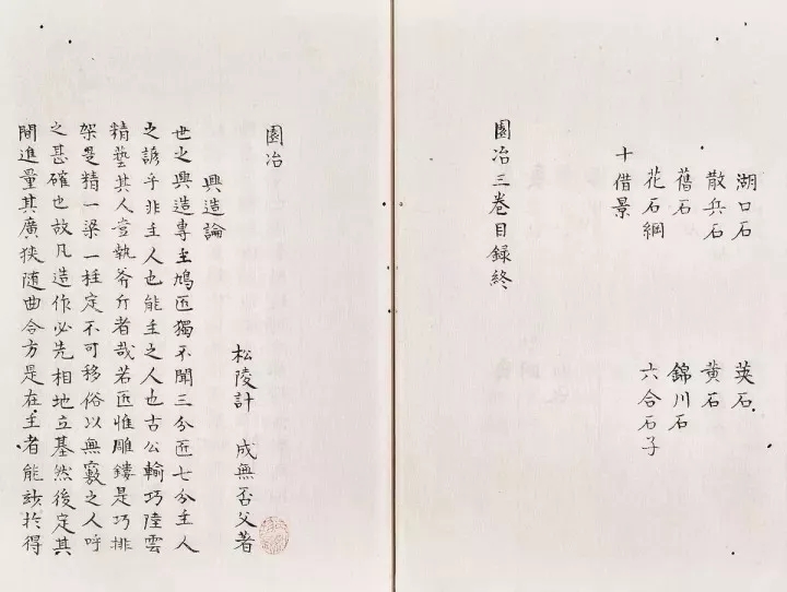 书成于崇祯七年(1634年),是我国第一部全面阐述造园法则的书,内容丰富,文笔优美。谓其全面,实则已巨细无遗,后来者只有领会学习的份,切莫做补充和超越想。