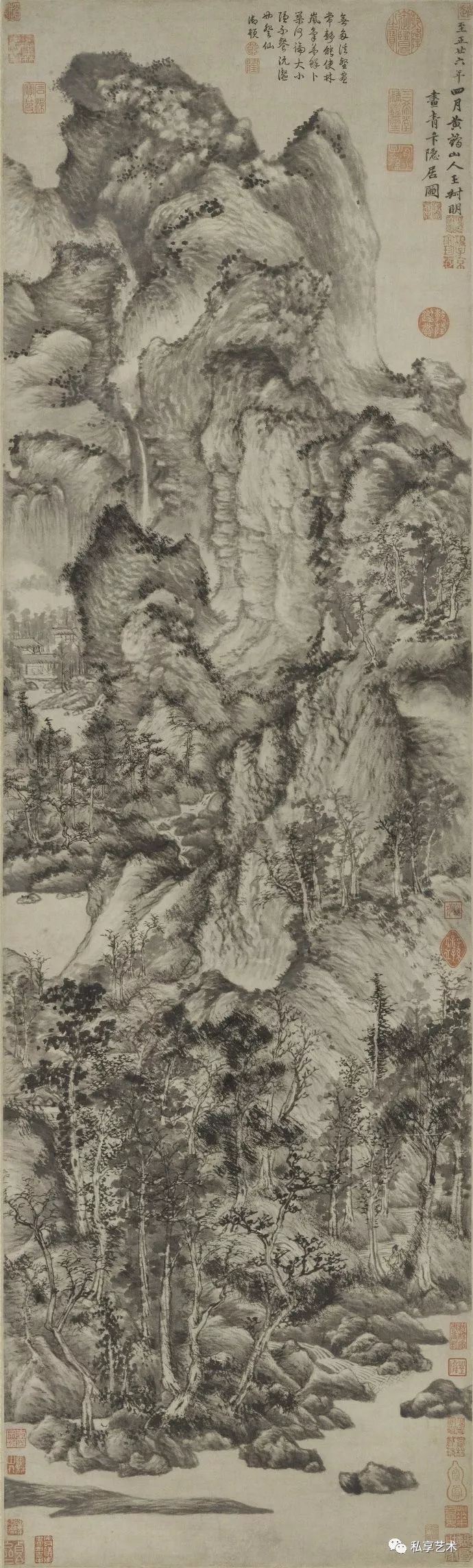 王蒙在技术上可能有一些想法,又把赵孟頫的细腻的小山小水和前人范宽、巨然的大山大水结合一下,他企图用赵孟頫的比较细腻的笔墨,去画气魄不亚于范宽、巨然的大山水。