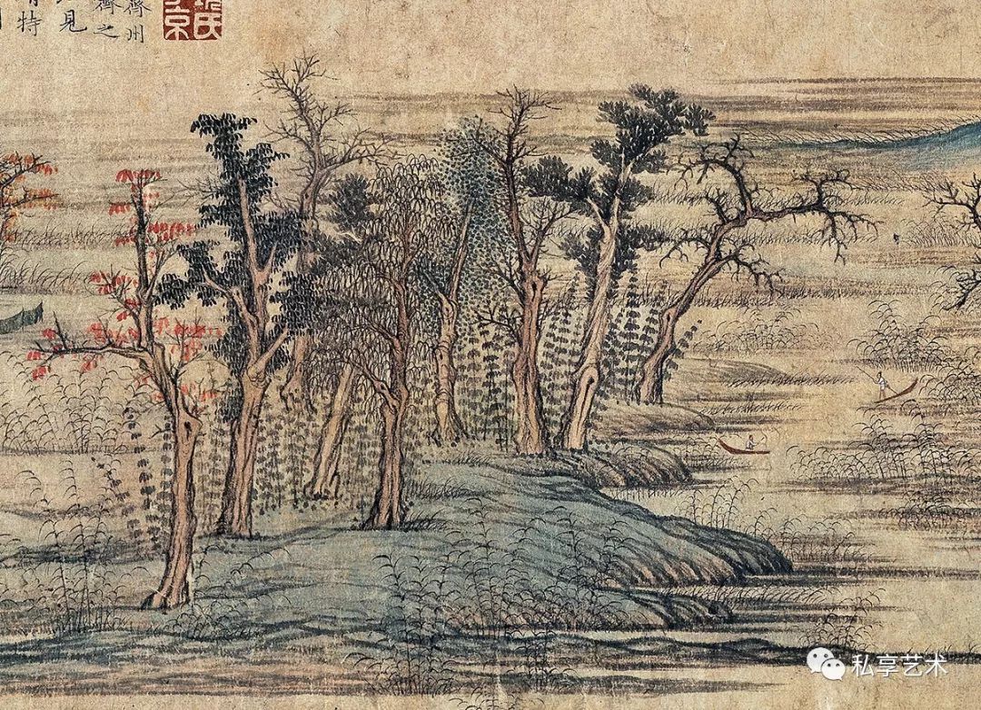 所以他只好不说这些豪言壮语,而把对生命的感慨,对自己生存状态的尴尬、矛盾,一种更加复杂、更加细腻的感叹表达在他的笔下。像《西风瘦马图》,一个人牵着一匹马,我觉得特别像他的自画像,英雄落寞,对命运的无奈。《鹊华秋色图》就突然从巨然、范宽那种大幅的、很雄壮的交响曲似的曲式上降下来,变成一个人半夜三更拿一支箫在那儿独奏。他的小线条非常敏感,非常细腻,画几棵小树,画一点小山,画几条小鱼,几个渔人在凄风苦雨里打打鱼,就画这些。