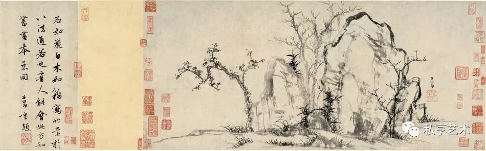 元 赵孟頫《秀石疏林图》卷 纸本 墨笔 27.5x62.8cm 故宫博物院藏