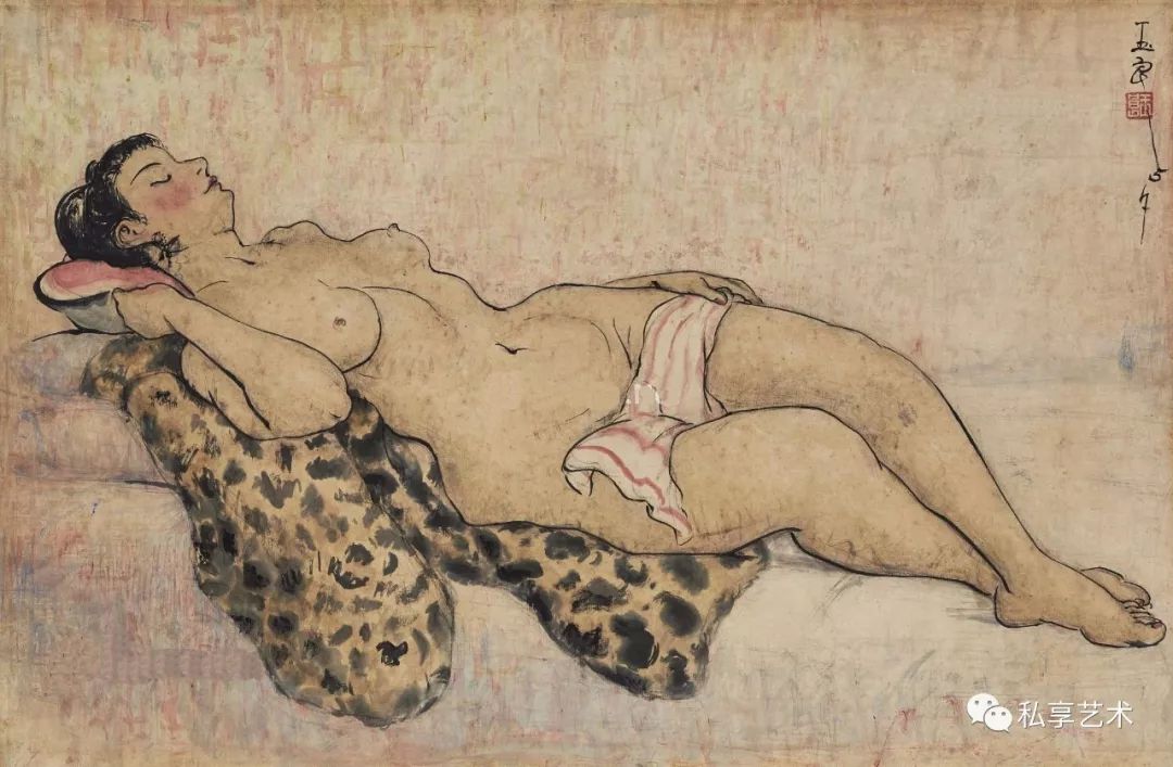 潘玉良的人体画,具有独特的风格,她往往先用熟练流畅的黑线勾出人物的造型,然后再点染重彩塑造人体的量感和肌肤的质感。有时候她也用水彩先画出形体,再用墨线强调姿态的动感。在构图方面,她保留了中国画留白的概念,却在留白的部分,改用点描或交错的笔法充满空间。画艺成熟以后的潘玉良,寄情于对女性裸体的歌颂,在一具具饱满的躯体中,看到的是生命的力量和女性自我颂扬的尊严。