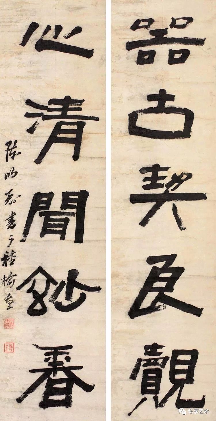 陈鸿寿的隶书较之以往的隶书具有“狂怪”的特点,说明他有创新的勇气和才能,但在结字和章法上,用笔仍然属守古法,笔笔中锋,力透纸背。
