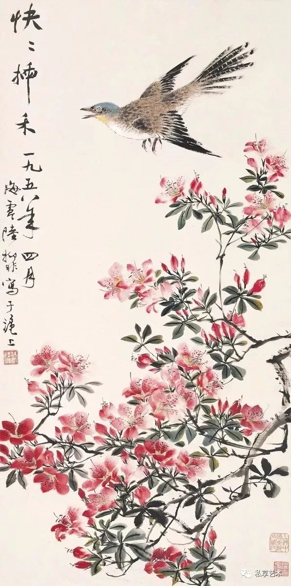 除了花木,陆抑非对鸟禽的观察研究也从不间断,他自己养鸟,为了时刻观察活鸟的神态,这样画出来的画比对着照片临摹出的要生动许多。