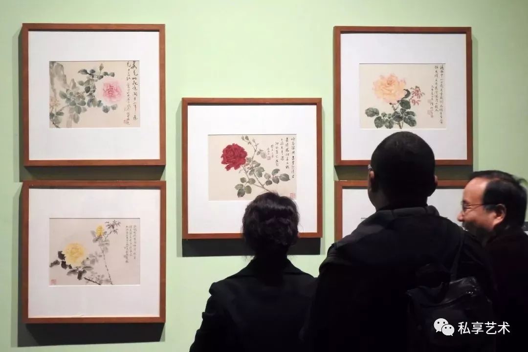 当年,陆老人称“陆牡丹”,他的牡丹作品,享誉海内外。“一池春水”的其中一个展厅,便特别全部布置了陆抑非的牡丹题材画作,品种、颜色、姿态各有特色。