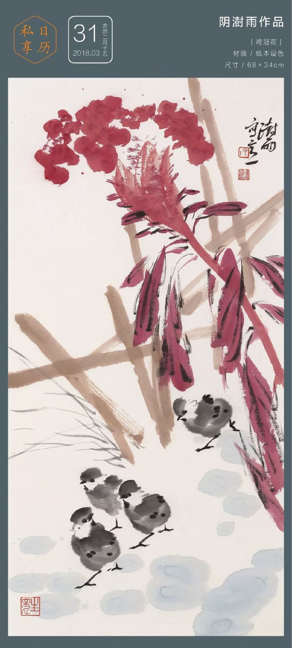 阴澍雨,河北霸州人,1974年生于河北香河。1994年毕业于河北轻工业学校陶瓷美术专业。2000年毕业于中国美术学院中国画系花鸟专业,获学士学位。2005年毕业于中央美术学院中国画系,获硕士学位。2011年毕业于中央美术学院造型艺术研究所,获博士学位。现为中国艺术研究院副研究员,《美术观察》栏目主持。中国美术家协会会员。