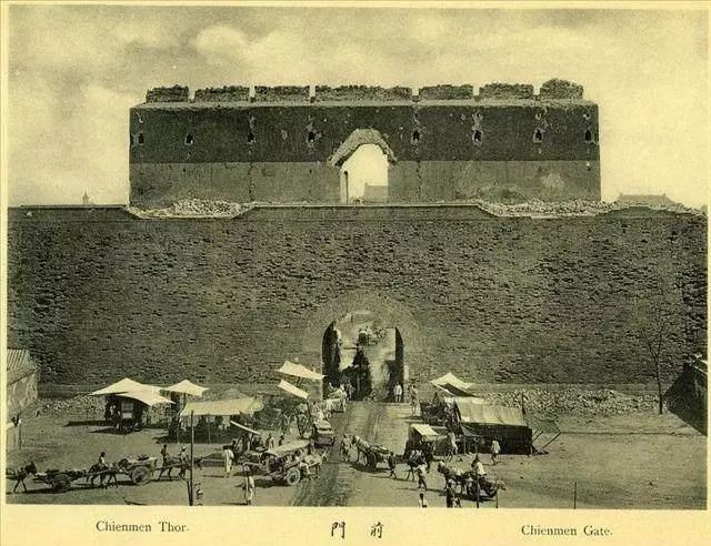 正阳门,俗称前门,是明清两朝北京内城的正南门。1900年,城楼和箭楼为八国联军所毁。1903年和1906年分别重建。照片上是重建前的前门。