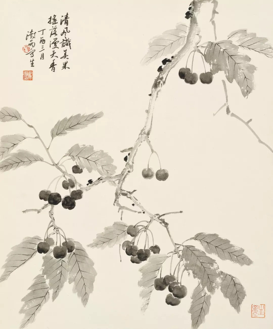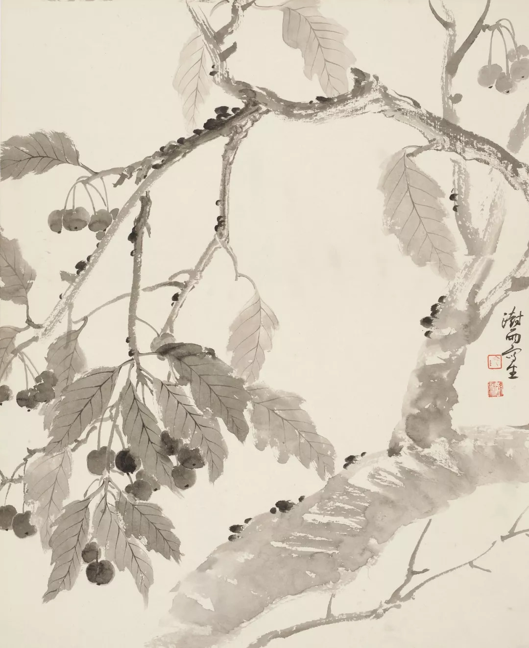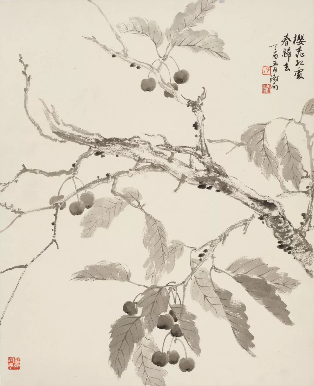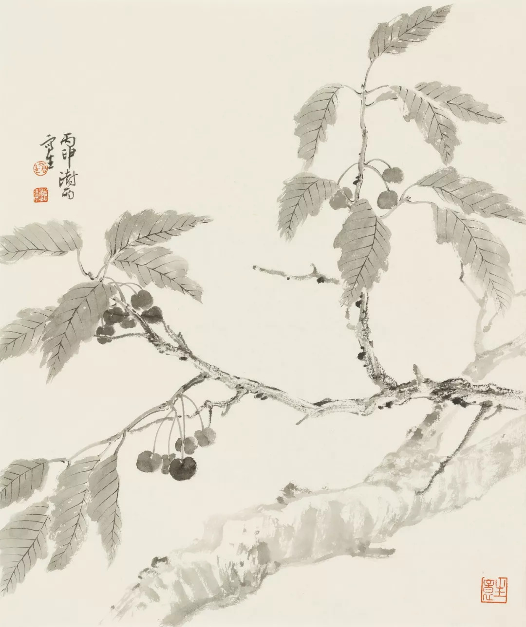 没骨樱桃 纸本水墨 57×48厘米 2017(1)
