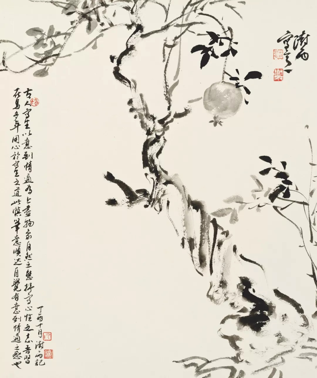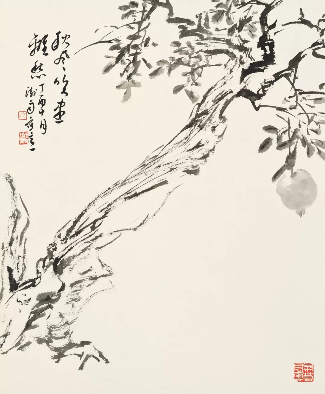 古木红榴 纸本水墨 57×48厘米 2017