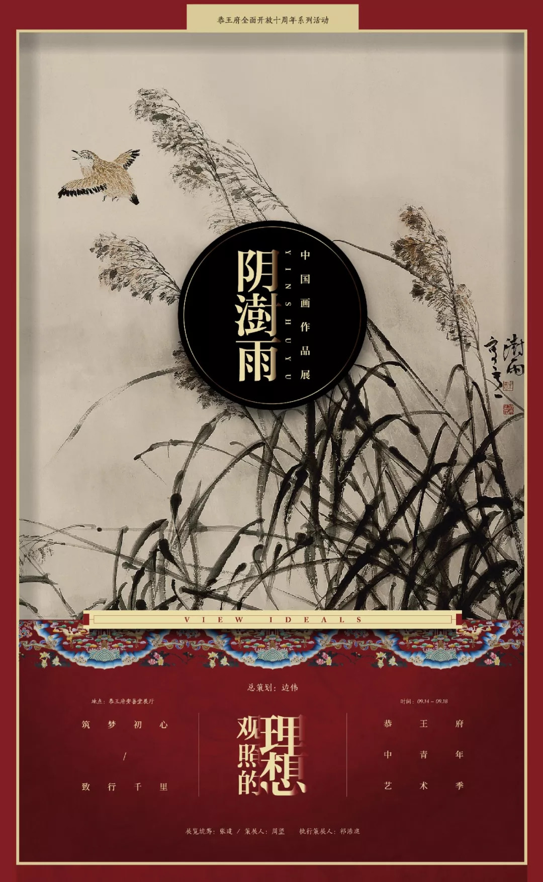 由恭王府博物馆展览活动部主办,北京青少年艺术服务中心协办的“2018恭王府中青年艺术季——阴澍雨中国画作品展”将于2018年9月14日18时在恭王府安善堂开幕。