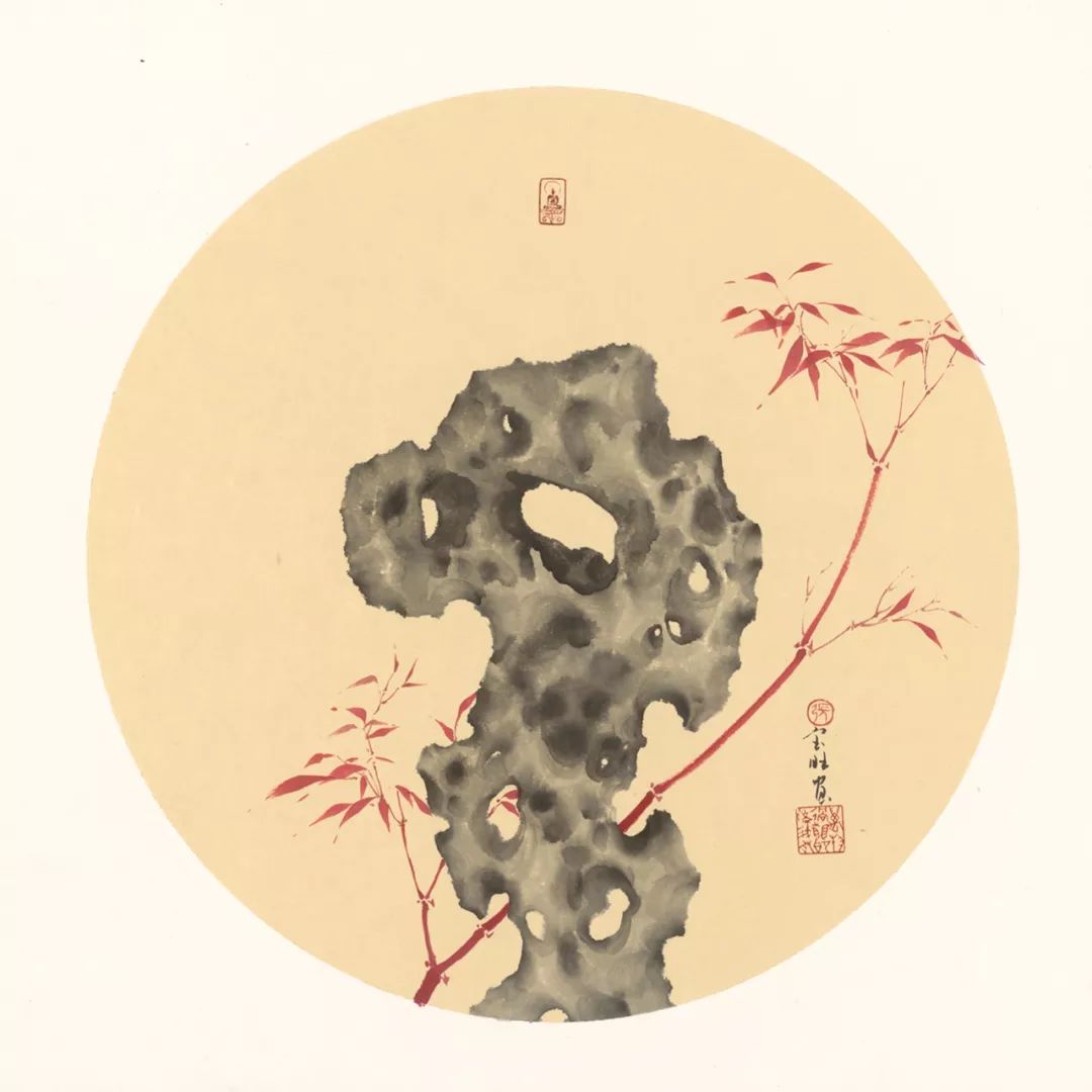 虽画幅只是方寸之间,但天地无穷自然的变化无穷,无谓内外,大小无间,于是画作的湖石笔墨肌理,在起伏不定之间则气韵无穷。作为画者,心怀丘壑、慈悲喜舍,妙手偶得而已!