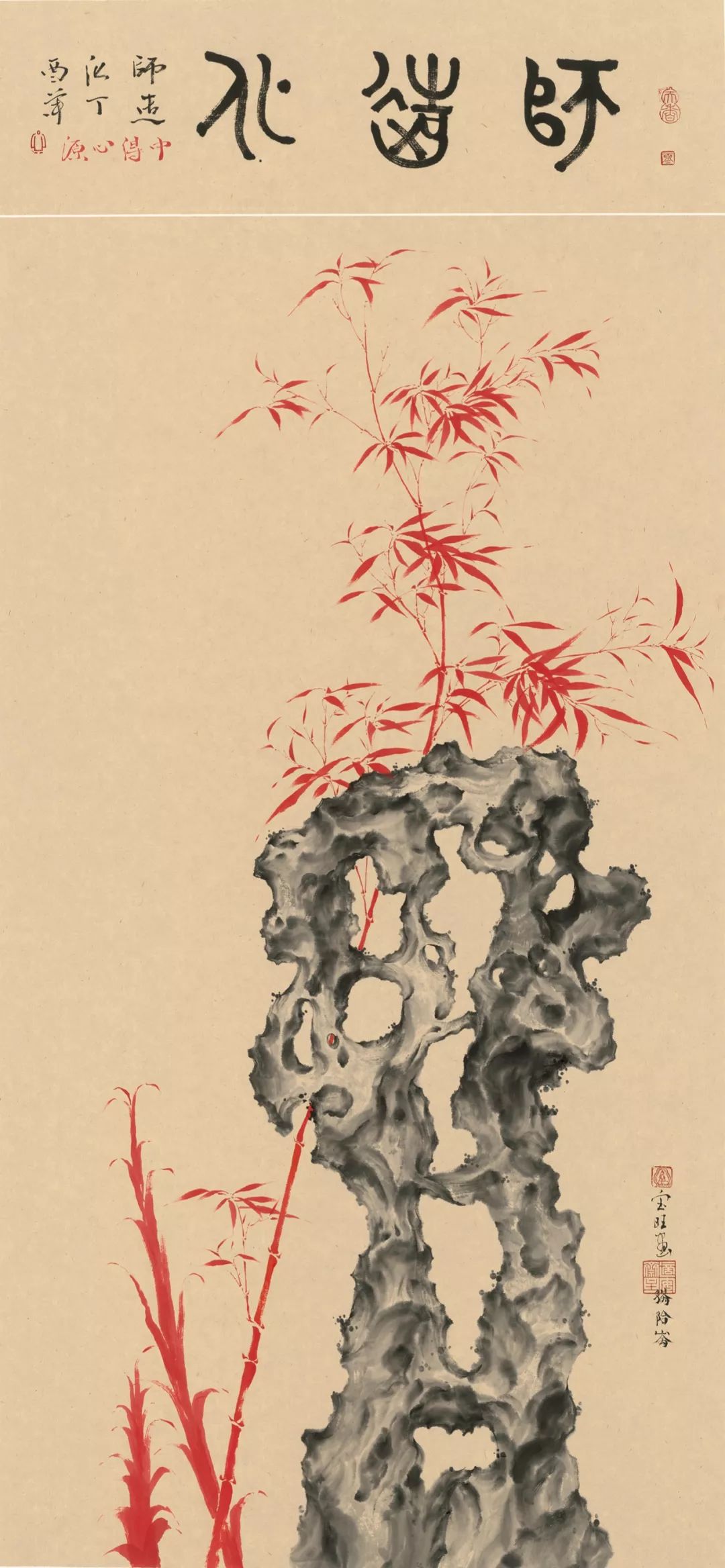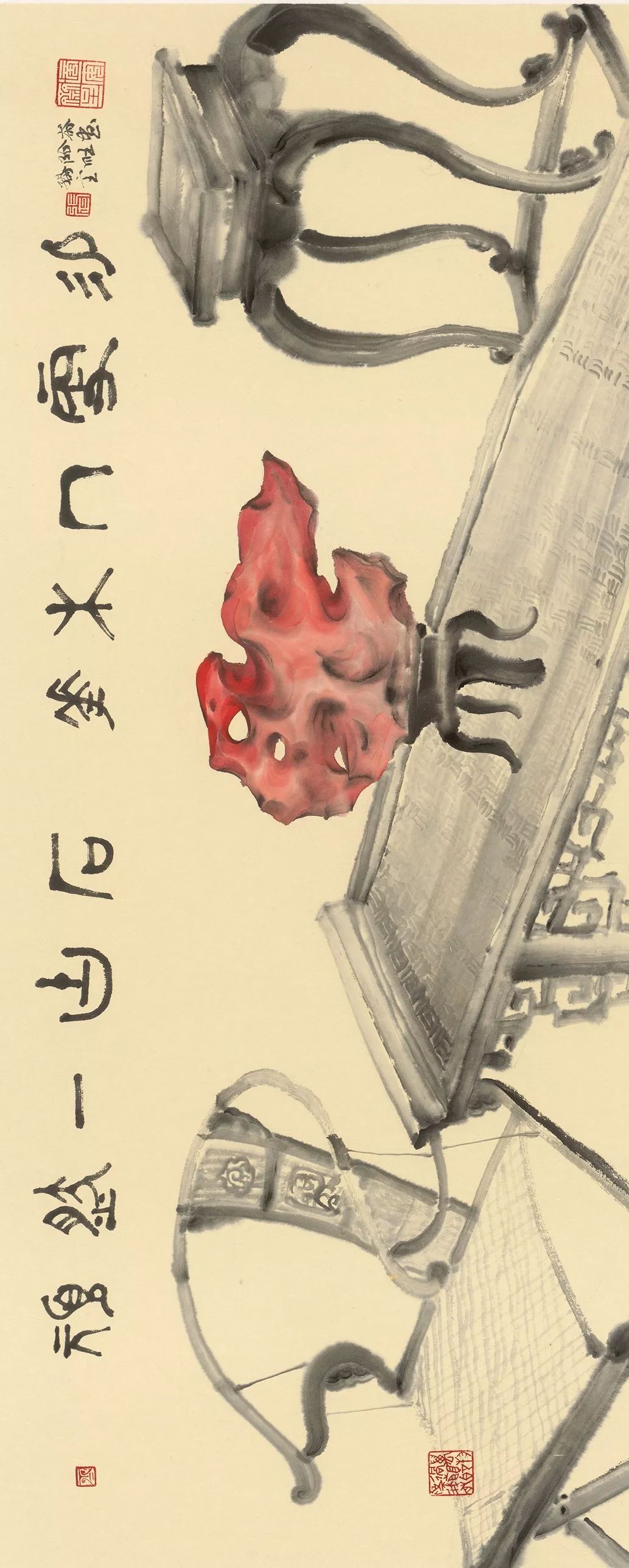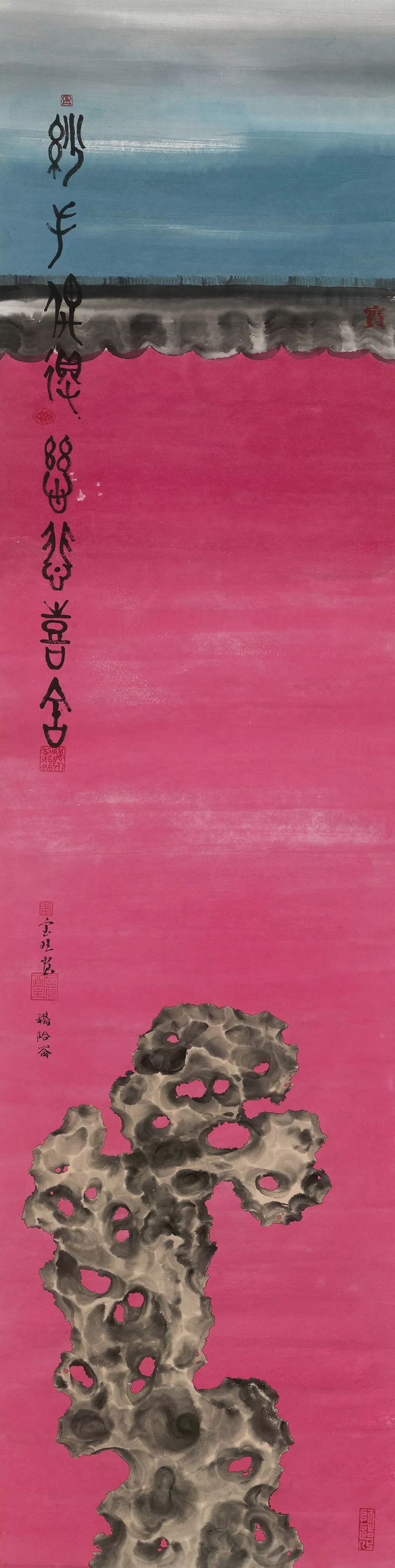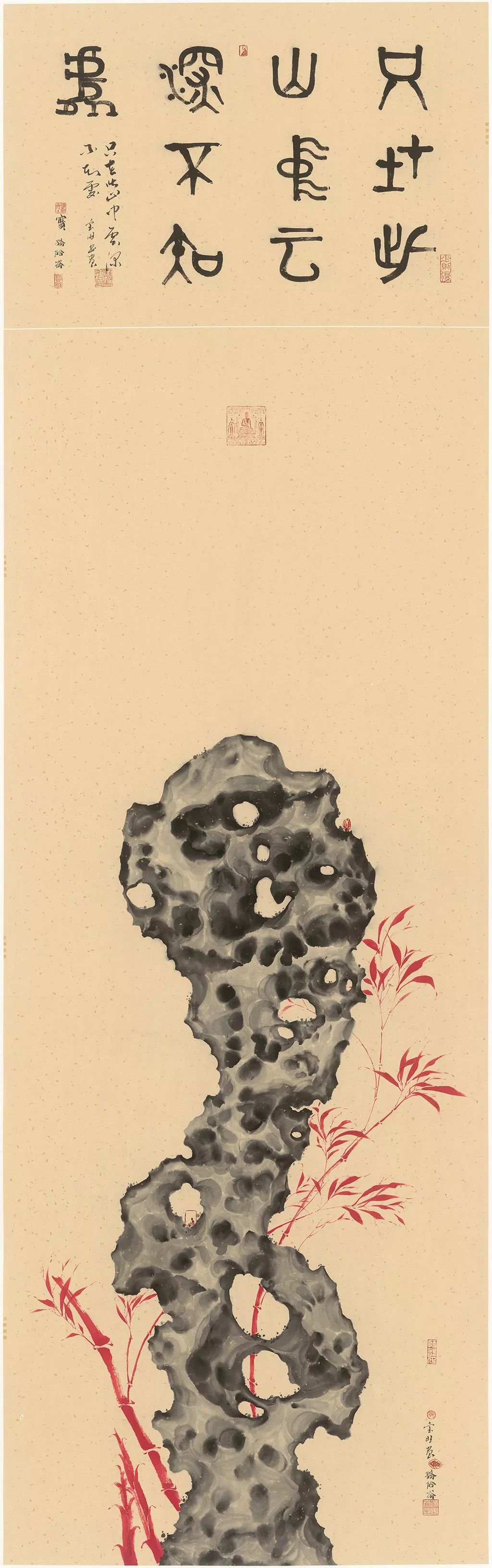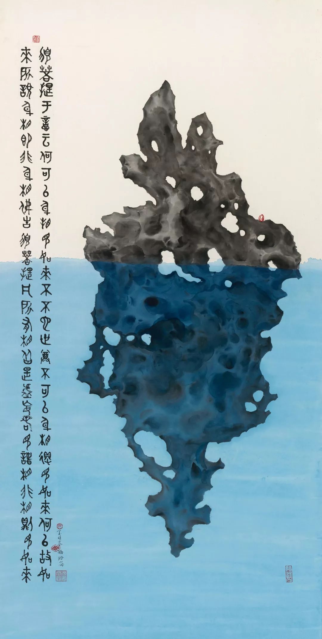画作中看似湖石孤独静立,但笔墨随意奔放。艺术“空性的阴阳之美”便由此形成,也令作者本身回归到艺术的本质状态,用自身触动的感官追求作品的韵律。使作品展现了基于自我情绪所形成的节奏感。