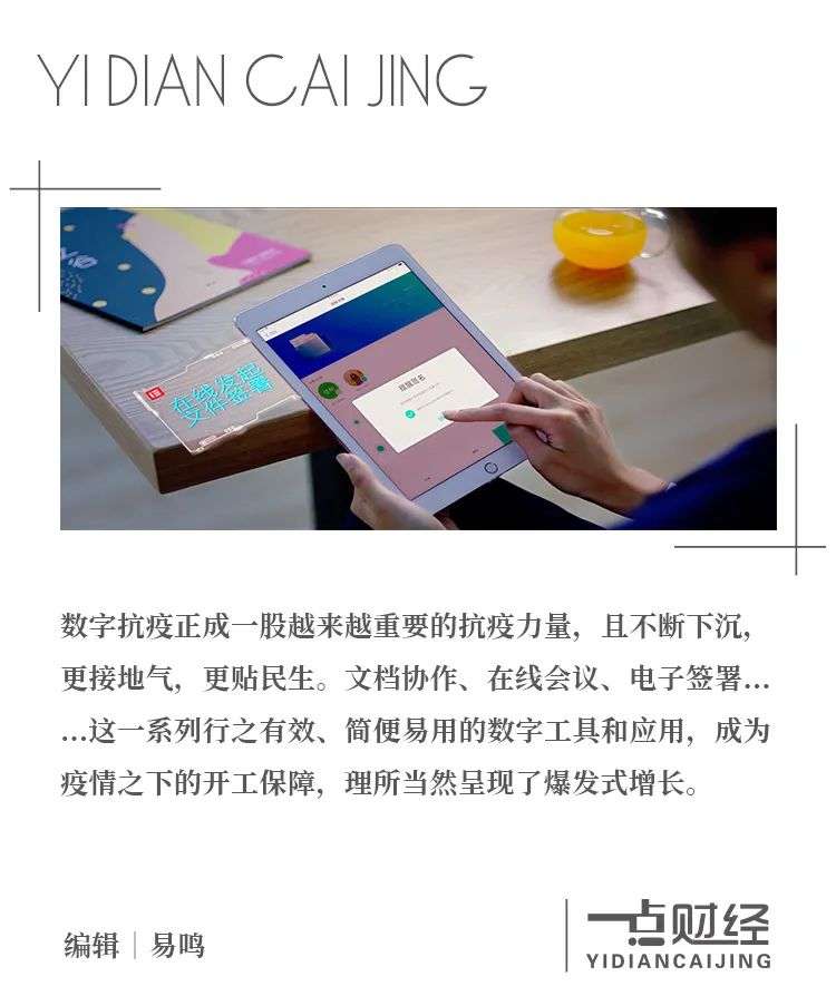 数字抗疫正成一股越来越重要的抗疫力量,且不断下沉,更接地气,更贴民生。文档协作、在线会议、电子签署……这一系列行之有效、简便易用的数字工具和应用,成为疫情之下的开工保障,理所当然呈现了爆发式增长。