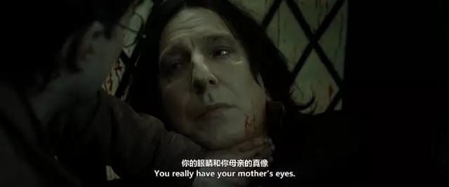 直到最后一集,我们才明白那份深望哈利眼睛背后的深情,有多么隐忍而伟大。当他为了哈利被杀时,临死前那句“你有一双和你母亲一样的眼睛”,他哭泣着让哈利把记忆取出,瞬间戳中了泪点。