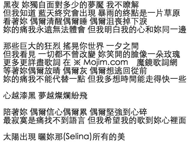 Hebe的第二张个人专辑里,单曲《你》也正是为鼓励受伤的Selina所作。