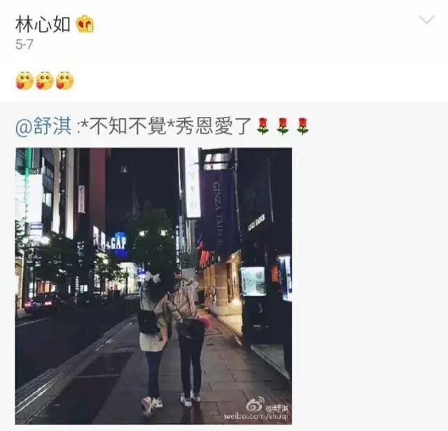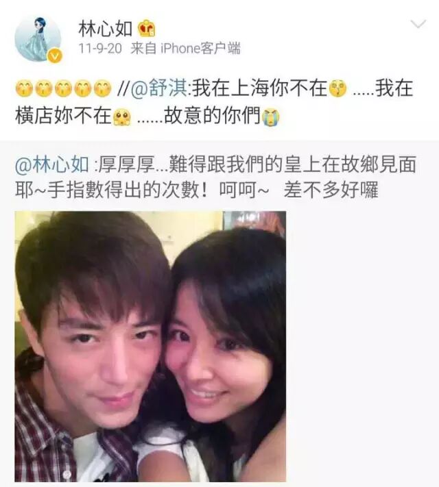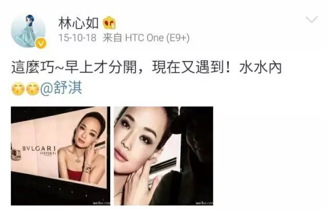 同是台湾艺人又同年出生的林心如和舒淇两人是实打实的好闺蜜,微博上两人也是频繁互动: