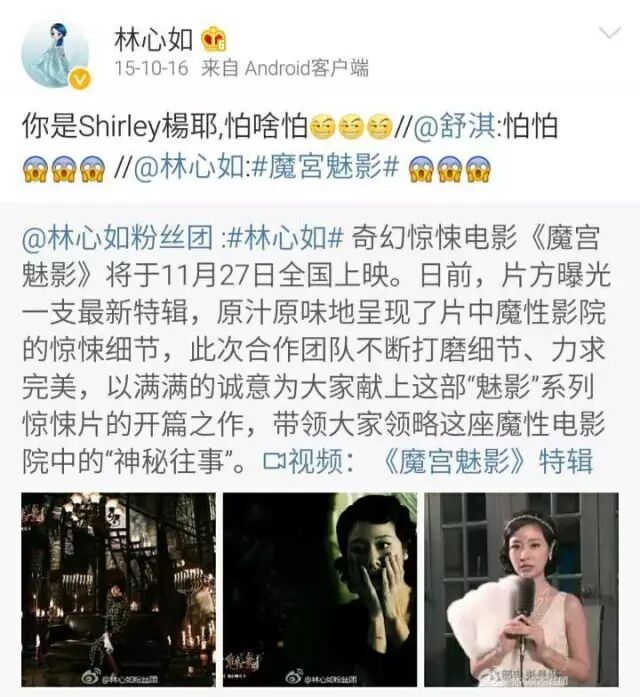 之前最近的一次两人单独会面,似乎还是15年初,林心如包场请舒淇看电影: