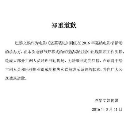 但一直到开幕式结束,井柏然、马思纯都没能在红毯上出现。作为承办方的巴黎文娱立刻发表致歉声明,称是组织工作失误!