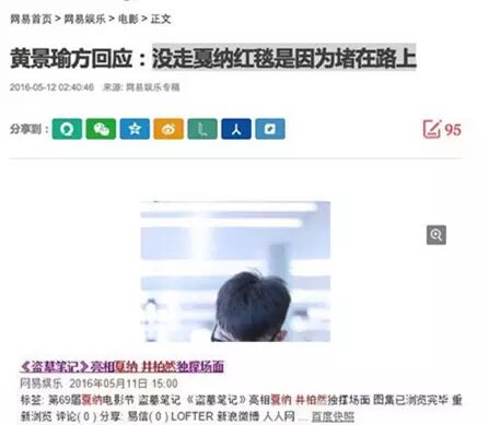 后来没出现在红毯上,官方回应的理由是堵在路上