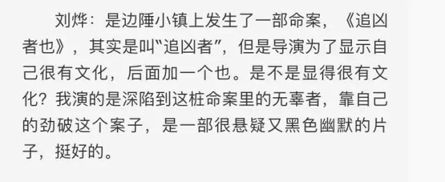 这部《追凶者也》改编自07年的六盘水五兄弟万里追凶事件,是曹保平导演继《烈日灼心》后的又一部黑色幽默悬疑片,刘烨对电影剧情做了比较贴切的概括。社长确定不是在“坑”导演吗