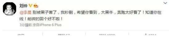 当然社长也有玩劈叉了的情况,比如在范冰冰周四见的微博底下回复:见你妹,被大黑牛回呛