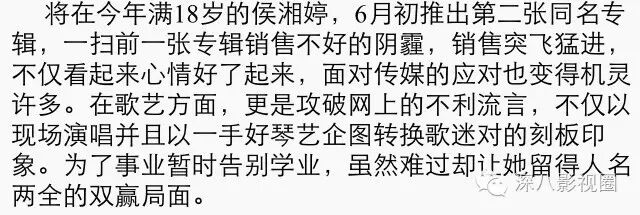 如今萧亚轩成了鲜肉收割机,侯湘婷成了幸福少奶奶。不论多么狗血的恩怨情仇终将随风而去,留下的,是她们的歌。