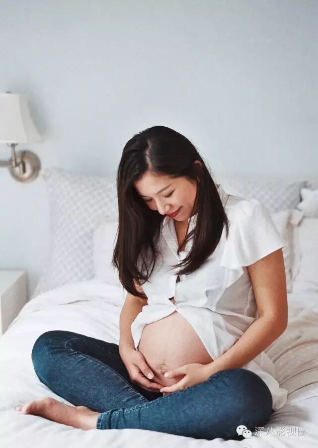 照片中的她大腹便便