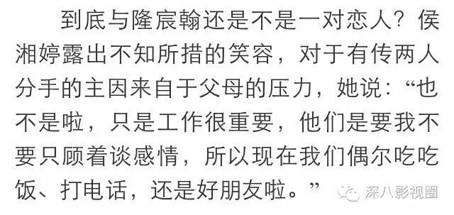 恋爱没谈两年,侯湘婷和隆宸翰就分手了。她在有的采访中说分手是为了专心工作,有的采访中却说是隆宸翰发现她拍内衣广告大怒就此分手......