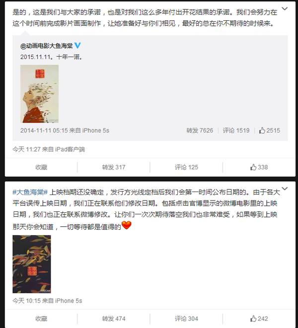 在14年电影官博就发了一关于定档的微博。