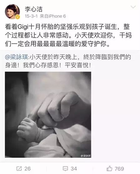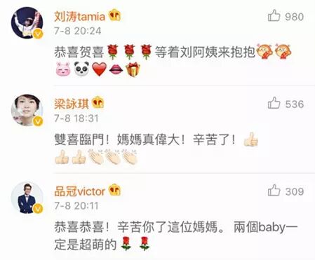 “鬼后”李心洁当妈妈啦!昨天下午李心洁发微博称双胞胎儿子平安出生。