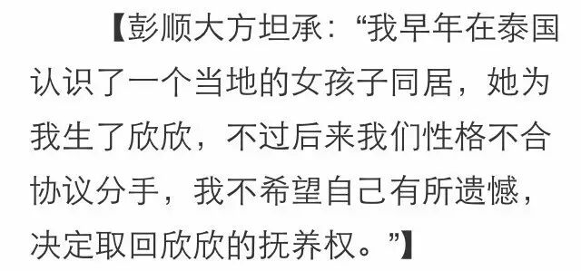 2014年5月,彭顺被拍到与26岁的香港艺人李悦彤在一起,两人还一起看电影、逛街,期间有亲吻、拖手