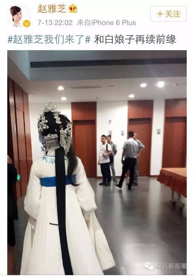 赵雅芝昨晚在微博上晒出了一张“和白娘子再续前缘”背影照