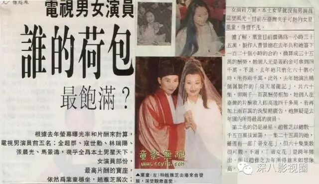 台媒曾经报道说,赵雅芝拍新白娘子时的片酬是每集4万港币,折合台币当时约12万。白娘子大火,她拍下一部戏时,片酬就翻了一倍变成每集24万台币。