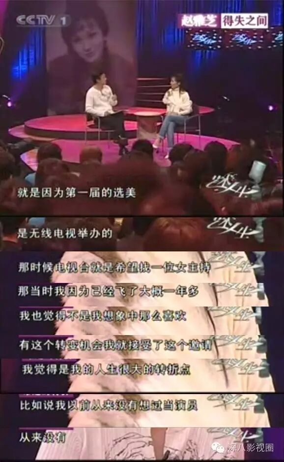 港姐比赛后赵雅芝并没有立刻进娱乐圈,而是继续当空姐。一年后接到邀请她才进入电视台,而且是当主持兼做幕后工作,根本没想到自己会当演员。
