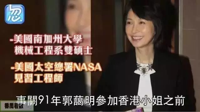 郭蔼明也是港姐出身,1991年,24岁的她以美国南加州大学机械工程学硕士身份参选香港小姐竞选,用幽默的谈吐、具有亲和力的笑容赢得了评委的心,一举夺得冠军,成为史上学历最高的港姐之一。