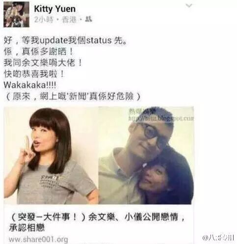 然而大新闻只持续了几个小时,今早十点余文乐和阮小仪都先后出来否认了。余文乐澄清时表示,连他妈妈都打电话来问,这误会也是没sei了~