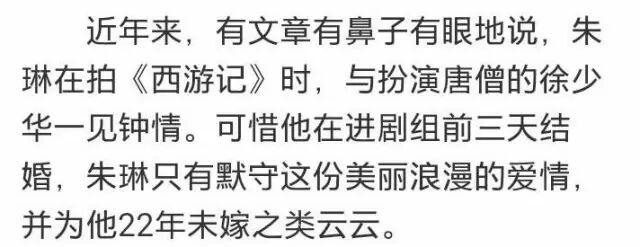 而揭幕的新闻里说,朱琳在采访中已经多次否认这段不请自来的爱情故事啦。而且人家在进《西游记》剧组前就已经结婚。