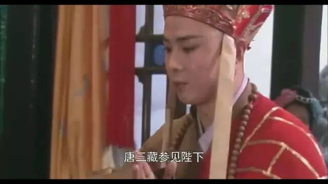 唐僧尴尬地做了三次自我介绍,一次比一次加重语气,国王还是沉浸在痴痴看着的状态,最后还是蝎子精太师来提醒才回应了人家