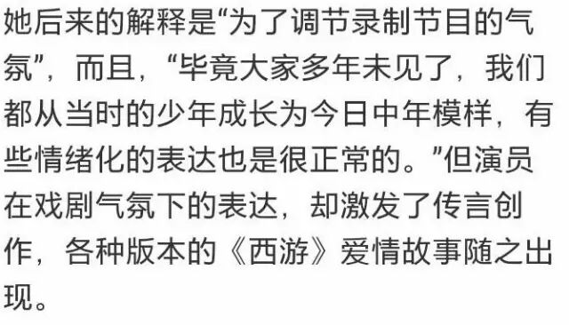 后来本人解释道是“为了调节录制节目的气氛”。但是各种版本的《西游》爱情故事也不断地出现