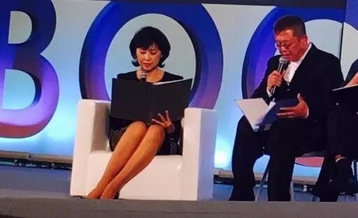 如今64岁的朱琳老师在现场朗诵的活动照是这样的