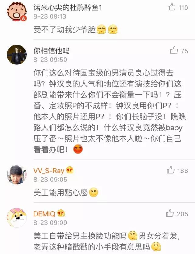 评论一片吐槽声,粉丝也是心碎了,奈何自家爱豆的高颜值也抵不过美工的杀猪刀。