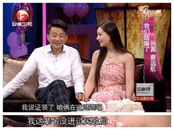 2013年,爱情长跑六年的孙茜和蔡远航领证。领证的时候还有个插曲,孙茜说民政局从进去到出来,不超过三分钟。蔡远航说,那我们在这逛逛吧,我这辈子没进过民政局......这对也是有点搞siao