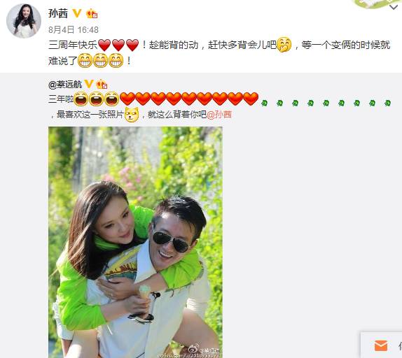 三周年,蔡远航说“要一直这么背着你”,孙茜调侃等一个变俩的时候就不一定背的动了~